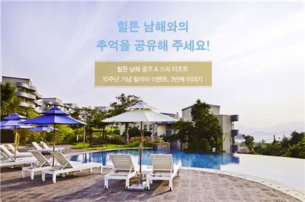 [아시아경제 오주연 기자]힐튼 남해 골프&스파 리조트가 10주년을 기념해 '힐튼 남해와의 추억을 공유해 주세요'라는 슬로건으로 이벤트를 진행한다고 25일 밝혔다.