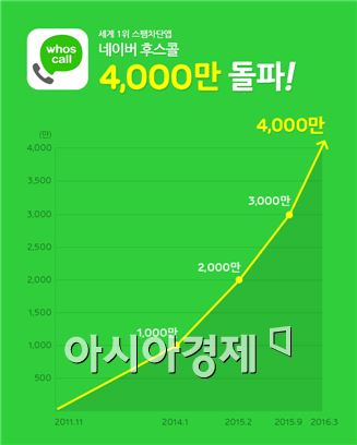 [아시아경제 한진주 기자] 네이버 자회사 캠프모바일의 글로벌 스팸 차단 앱 후스콜이 누적 4000만 다운로드를 돌파했다.