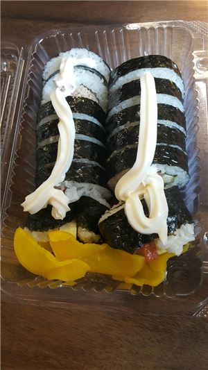 참치김밥(2500원) - 이화여자대학교 포스코관 이화사랑= 일반 분식집에서 파는 참치김밥과 시각적인 차이도 없고 가격도 비슷하다. 그러나 이 참치김밥을 먹으려면 점심시간에는 최소 20분 이상 줄을 서서 기다려야 한다는 것을 명심해야 한다. 구성은 단순하다. 참치김밥 한 줄과 단무지 몇 조각. 그러나 김밥을 수령하고 계산을 완료하면 마요네즈 한 통이 당신을 기다리고 있다. 이 마요네즈를 아주 사정없이 듬뿍 뿌려보자. 마요네즈가 김밥 속에 들어 있는 일반 참치김밥과는 또 다른 마성의 맛을 선보일 것이다.
