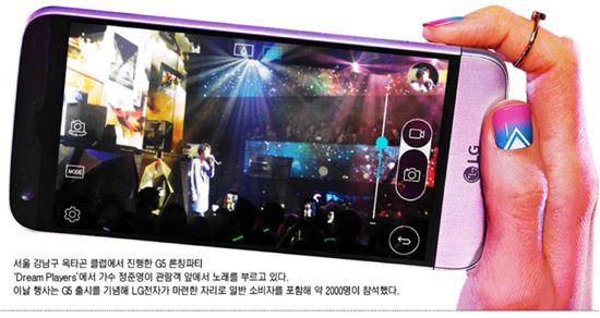 LG전자는 이날 클럽에 2000여명의 젊은 층을 모았다. 모두 자발적인 신청을 통해 추첨된 이들이다. '클럽'이라는 공간은 위계질서가 분명한 전자회사의 이미지와는 거리가 먼 장소다. 이날 파티는 CJ E&M의 채널 tvN의 방송 프로그램 '드림 플레이어스'의 론칭 축하를 겸한 자리였지만 G5가 주인공인 론칭 행사의 장소를 클럽으로 결정하기까지 LG전자로서는 쉽지 않은 과정을 거쳤다.