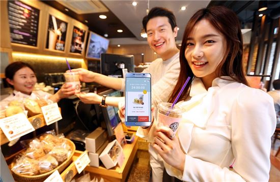 SK텔레콤은 매일 특정 시간대에 외식·커피 할인, 영화·e북 콘텐츠 무료 등 다양한 생활 혜택을 제공하는 20·30대 직장인 특화 생활 서비스 T라이프를 6일 출시했다. 사진은 SK텔레콤 모델들이 서울 중구에 위치한 커피빈'에서 'T 라이프'의 커피 할인 혜택을 체험하는 모습.