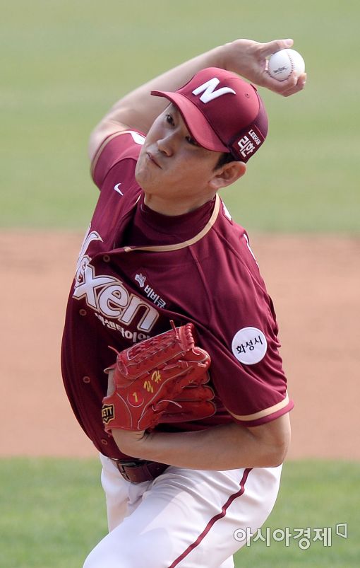 [잠실=아시아경제 김현민 기자] 프로야구 넥센 히어로즈와 두산 베어스의 2016 KBO리그 경기가 10일 서울 잠실구장에서 열렸다. 넥센 선발투수 양훈이 역투하고 있다.