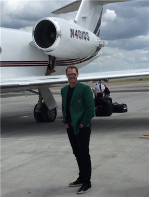 윌렛이 11일(한국시간) 미국 조지아주 오거스타내셔널골프장(파72)에서 끝난 80번째 마스터스(총상금 1000만 달러)를 제패한 뒤 '네트제츠(NetJets)'에서 임대한 전용기 앞에서 포즈를 취하고 있는 장면이다.