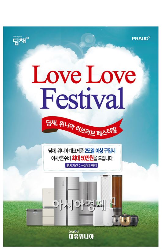 대유위니아가 다음달 31일까지 가족의 달과 이사·혼수 시즌을 맞아'러브러브 페스티벌'을 진행한다.