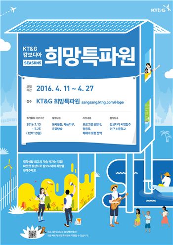 [아시아경제 이주현 기자]KT&G가 전국의 대학생을 대상으로 캄보디아 현지 봉사활동에 참가할 ‘캄보디아 희망특파원’ 5기를 오는 27일까지 모집한다.
