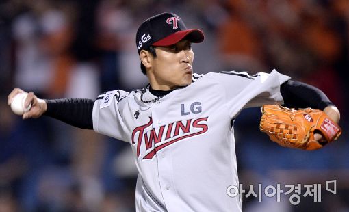 [대전=아시아경제 김현민 기자] 프로야구 LG 트윈스와 한화 이글스의 2016 KBO리그 경기가 15일 대전구장에서 열렸다. LG 구원투수 정현욱이 7회말 역투하고 있다.