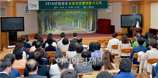 [아시아경제 문승용] 담양군은 지난 14일 군청 대회의실에서 공직자 100여명을 대상으로 성평등 정책 사례를 중심으로 한 ‘2016년 성별영향분석평가 교육’을 실시하는 등 성 주류화 확산에 적극 나섰다.