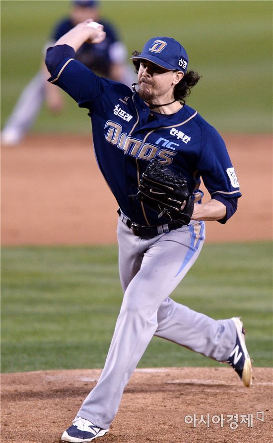[잠실=아시아경제 김현민 기자] 프로야구 NC 다이노스와 LG 트윈스의 2016 KBO리그 경기가 20일 잠실구장에서 열렸다. NC 선발투수 스튜어트가 역투하고 있다.