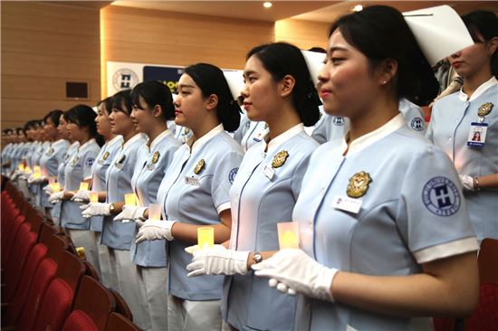 을지대 간호대학 3학년 학생 162명은 나이팅게일 선서와 촛불의식을 통해 나이팅게일의 숭고한 희생정신을 본 받아 미래 간호인으로서 인간생명을 위해 헌신할 것을 다짐했다.