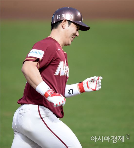 [문학=아시아경제 김현민 기자] 프로야구 넥센 히어로즈와 SK 와이번스의 2016 KBO리그 경기가 21일 인천 문학구장에서 열렸다. 2회초 1사 1루에서 넥센 박동원이 SK 선발 박종훈을 상대로 좌월 선제 투런홈런을 치고 베이스를 돌고 있다.