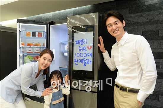 삼성전자는 25일 패밀리 허브 냉장고 판매량이 국내 출시 20일만에 1000대를 돌파했다고 밝혔다. 이는 하루 평균 50대 이상 판매된 수치며 판매 30일만에 1000대를 달성한 셰프컬렉션보다 앞선 기록이다.