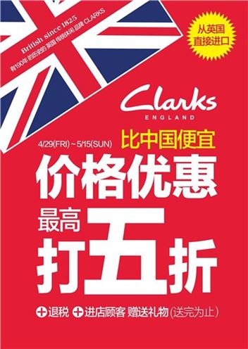다음달 15일까지 금강제화 명동점, 랜드로바 명동점, 클락스 종로점, 클락스 현대신촌점, 클락스 월드타워점 등 5개 매장에서 진행되는 이번 행사에서는 중국인 관광객들을 대상으로 영국 캐쥬얼 슈즈 브랜드 클락스의 제품을 최대 50% 할인 판매한다.