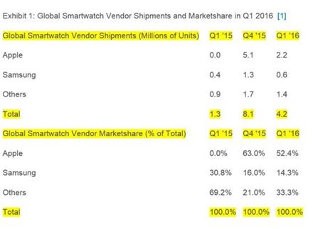 네일 모스톤 SA 수석 연구원은 "애플워치와 삼성 기어 모델이 12개국 이상으로 확대됐지만 LG나 모토로라 등 다른 브랜드들과의 경쟁이 심화되고 있다"고 말했다.
