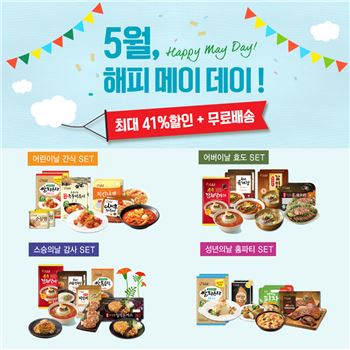 5월, 해피 메이 데이 기획 세트는 기념일별 의미를 담아 ▲어린이날 간식세트: 국물떡볶이·치킨너겟·토마토소스 쌀파스타·순살햄·새우철판볶음밥 ▲어버이날 효도세트: 손수 김치말이 국수·참나무향 그윽한 훈제오리·정성가득 갈비탕·푹고은육개장 ▲스승의 날 감사세트: 손수 김치말이 국수·푹고은사골설렁탕·숯불떡갈비·바삭한 일식돈카스·글루텐프리 쌀볶음면 ▲성년의 날 홈파티 세트: 프렌치 바베큐 폭립·참나무향 그윽한 닭가슴살·떠먹는피자 핫멕시칸할라피뇨·크림소스 쌀파스타까지 총 네 가지 종류로 마련됐다.