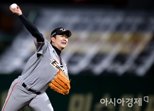 [문학=아시아경제 김현민 기자] 프로야구 한화 이글스와 SK 와이번스의 2016 KBO리그 경기가 3일 인천 문학구장에서 열렸다. 한화 선발투수 송은범이 역투하고 있다.