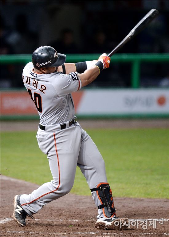 [문학=아시아경제 김현민 기자] 프로야구 한화 이글스와 SK 와이번스의 2016 KBO리그 경기가 3일 인천 문학구장에서 열렸다. 7회초 2사 만루에서 한화 로사리오가 SK 김승회를 상대로 좌월 추가 만루 홈런을 치고 있다.