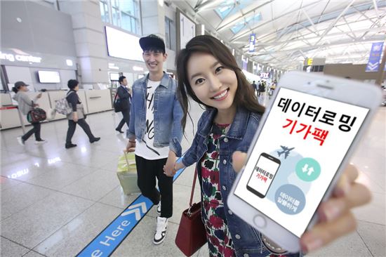 [아시아경제 박소연 기자]KT가 기가(GB)단위의 대용량 데이터를 장기간 저렴하게 이용할 수 있는 새로운 로밍 서비스 ‘데이터로밍 기가팩’을 국내 최초로 출시했다고 10일 밝혔다. 사진은 KT 모델이 인천국제공항에서 ‘데이터로밍 기가팩’ 을 소개하고 있는 모습.
