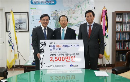 [아시아경제 오주연 기자]교촌에프앤비가 '제3회 교촌 허니 레이디스 오픈' 허니기부존 이벤트로 모금된 기금 2500만원을 군산시 소외계층을 지원하는데 사용한다고 11일 밝혔다.