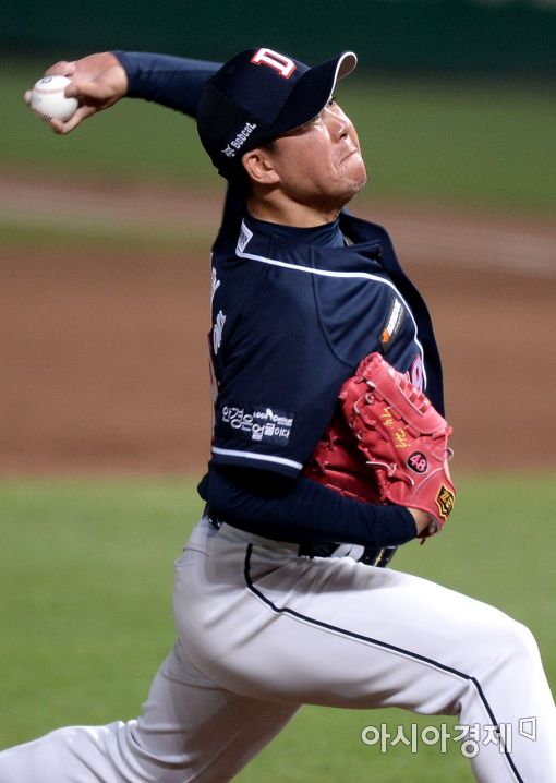 [문학=아시아경제 김현민 기자] 프로야구 두산 베어스와 SK 와이번스의 2016 KBO리그 경기가 11일 인천 문학구장에서 열렸다. 9회말 두산 마무리 이현승이 역투하고 있다.