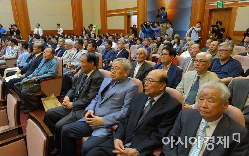 [아시아경제 윤동주 기자] 12일 한글을 우리 고유문자로 규정한 국어기본법 제3조에 대해 제기된 헌법소원 사건의 공개변론에 참석한 방청객들이 심각한 표정을 짓고 있다.