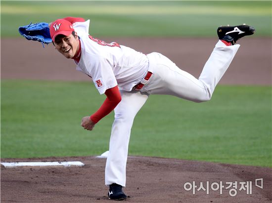 [문학=아시아경제 김현민 기자]프로야구 두산 베어스와 SK 와이번스의 2016 KBO리그 경기가 12일 인천 문학구장에서 열렸다. SK 선발투수 김광현이 역투하고 있다.