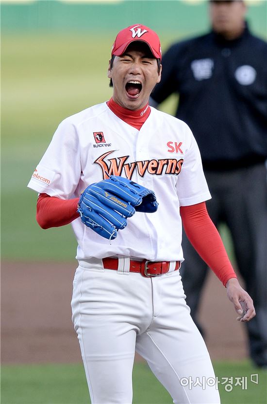 [문학=아시아경제 김현민 기자]프로야구 두산 베어스와 SK 와이번스의 2016 KBO리그 경기가 12일 인천 문학구장에서 열렸다. SK 선발 김광현이 1회초 2사 1,2루에서 두산 홍성흔 타석 때 볼 판정을 받고 아쉬워하고 있다.