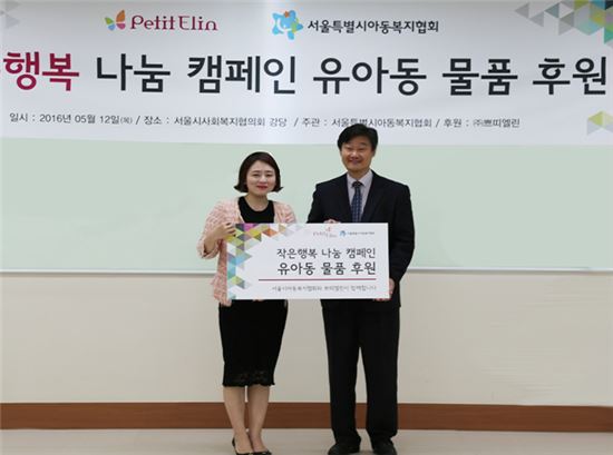 [아시아경제 임혜선 기자]유아용품 전문기업 쁘띠엘린이 서울시 아동복지협회와 '작은 행복 나눔 캠페인' 협약식을 12일 개최했다.