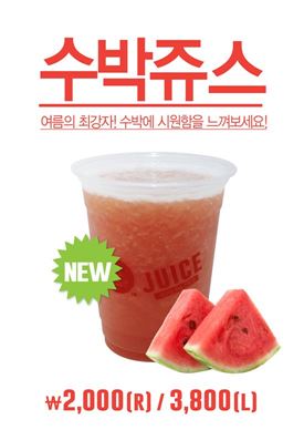 이번 신제품은 달콤하고 시원한 수박을 저렴하고 간편하게 즐길 수 있는 음료로 매장에서 수박의 씨를 바르고 주문 즉시 과일을 갈아 제공한다. 국내 최대 수박 주산지인 전북 고창에서 재배한 수박을 사용해 당도가 높고 품질도 우수한 것이 특징. 가격은 용량에 따라 2000원부터 3800원까지다.