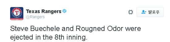 16일(한국시간) 텍사스주 알링턴 글로브 라이브 파크에서 경기를 벌인 양 팀은 경기 막바지인 8회, 홈팀 텍사스가 7-6으로 앞서 있는 상황에서 1루 주자로 나가 있던 호세 바티스타가 내야 땅볼 때 2루로 과격한 슬라이딩을 했다.