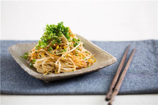 숙주 300g, 뱅어포 1장, 마늘 2쪽, 실파 4뿌리, 고추기름 1, 식용유 1, 국간장 1, 소금·후춧가루 약간씩