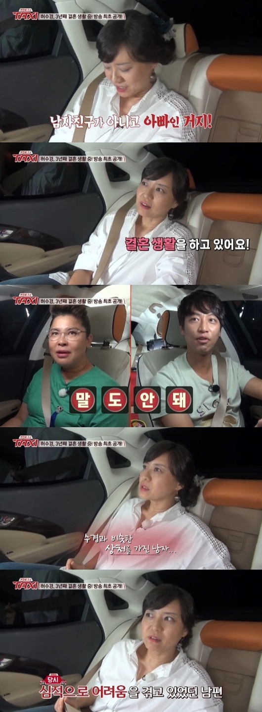 이날 방송에서 허수경은 "5살 연상의 대학교수와 결혼 생활을 하고 있다. 3년 됐다"고 남자친구와의 결혼 사실을 깜짝 공개했다.