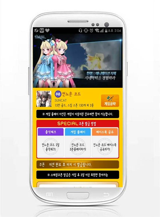 이번에 추가한 스페셜쿠폰은 신작 시네마틱 웹툰 모바일 RPG(Role Playing Game, 롤플레잉 게임) ‘언노운코드’ 쿠폰으로 등록하면 15만 골드와 스킬스톤 150개 등으로 구성된 6만 원 상당의 특별한 혜택을 지급한다.