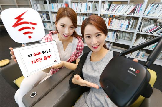 [아시아경제 안하늘 기자]KT는 'KT 기가 인터넷' 가입자가 150만명을 넘어섰다고 18일 밝혔다. 지난해 12월 100만명 가입자를 달성한 지 5개월 만에 달성한 성과다.