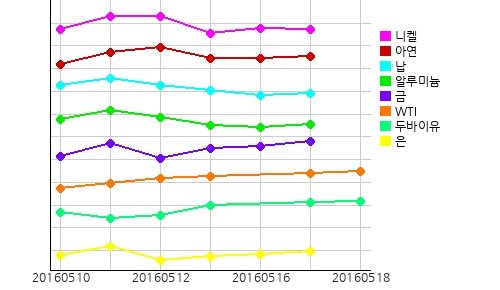 주요광물시세는 니켈이 전일 대비 톤당 10 달러 떨어져 8630 달러를 기록하는 반면, 주석이 전일 대비 톤당 75 달러 올라 16975 달러를 기록했고 납, 아연, 알루미늄 모두 상승세를 보였다.