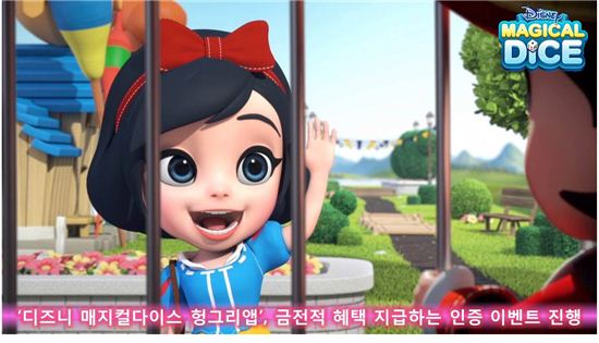 [아시아경제 온라인이슈팀] 신작 모바일 보드게임 ‘디즈니 매지컬다이스’가 지난주 신규 콘텐츠 '국가대항 랭킹'을 오픈한 가운데 유저 커뮤니티 ‘디즈니 매지컬다이스헝그리앱’에서는 유저들이 신규 콘텐츠를 금전적 부담 없이 즐길 수 있도록 밥알 포인트를 지급하는 인증미션 이벤트를 진행하고 있다.