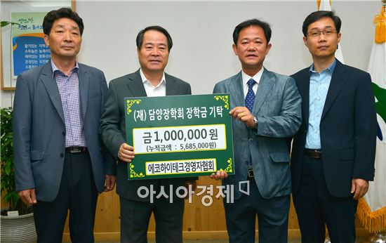 [아시아경제 문승용] 담양군은 지난 20일 (사)에코하이테크경영자협회(회장 나항도)에서 지역인재를 위해 사용해 달라며 100만원의 장학금을 (재)담양장학회에 기탁했다고 밝혔다.