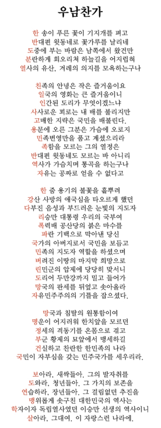 자유경제원은 소장을 통해 “(우남찬가는) 이승만 초대 대통령의 업적을 기리기 위한 공모 취지에 정면으로 위배되고 그런 내용의 시로 응모하는 행위는 명백히 시 공모전을 방해하는 행위”라고 주장했다.