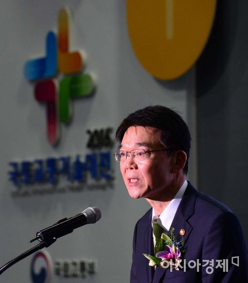 [아시아경제 백소아 기자] 25일 서울 강남구 코엑스에서 열린 2016 국토교통기술대전에서 강호인 국토교통부 장관이 축사를 하고 있다.