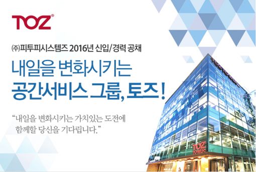 [아시아경제 조강욱 기자] 공간서비스 그룹 토즈(대표 김윤환)는 2016년 신입 및 경력사원 공개채용을 실시한다고 26일 밝혔다.