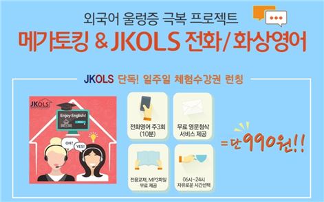 기간 동안 메가토킹&JKOLS 전화영어 3개월 이용권 구매 고객에 한해 특별 혜택을 제공해 3개월(주3회) 구매 시 무료 영작서비스와 문화상품권 5000원권을, 3개월(주2회) 구매 시 무료 영작서비스와 엔젤리너스 커피 쿠폰을, 3개월(주5회) 구매 시 무료 영작서비스와 함께 롯데백화점 상품권(1만원)을 증정한다.
