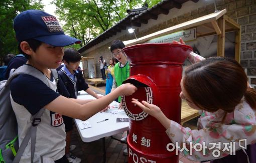 [아시아경제 백소아 기자] 27일 서울 중구 정동거리에서 열린 정동야행에서 어린이들이 체험 행사를 즐기고 있다.