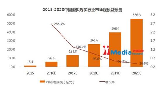 또다른 중국의 시장조사 업체인 아이아이미디어(iiMedia)에 따르면 중국 VR 시장은 지난해 15억 위안에서 2020년 550억 위안으로 증가할 것으로 전망했다. 5년간 무려 36배나 성장한다는 것이다.