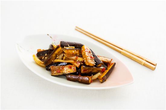 3. 가지와 양파가 어느 정도 익으면 두반장과 굴소스를 넣어 볶다가 재료와 어우러지면 후춧가루와 통깨를 뿌린다.
