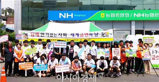 [아시아경제 노해섭 기자]영암군(군수 전동평)은 제29회 세계금연의 날(5.31)을 맞아 지난 5월 31일 영암관내 중·고등학교 대상으로 선정한 금연공감학교 만들기 4개 학교와 연계 공감학교의 홍보요원으로 위촉된 청소년들과 보건소직원 등 80여명이 금연분위기 확산을 위한 금연홍보 거리캠페인 등 ‘세계 금연의 날 행사’를 실시했다.