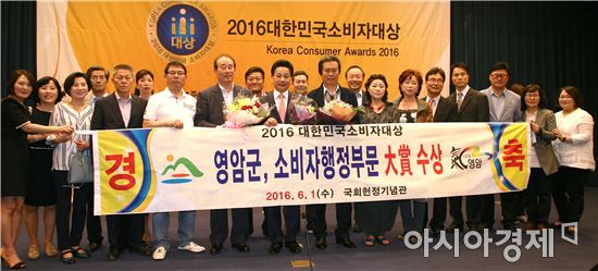 [아시아경제 노해섭 기자]영암군(군수 전동평)은 지난 1일 ‘2016 대한민국 소비자대상’ 시상식에서 소비자행정부문 대상을 수상했다.