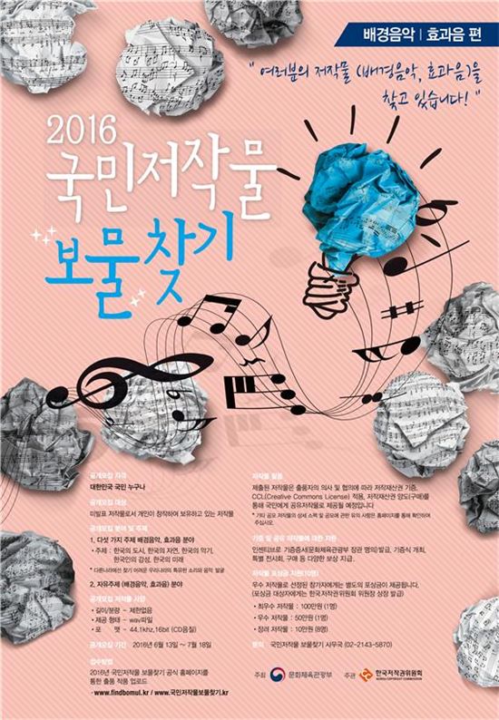 [아시아경제 이종길 기자]문화체육관광부와 한국저작권위원회는 10월 말까지 국민 저작물 보물찾기 공모를 한다고 13일 전했다.