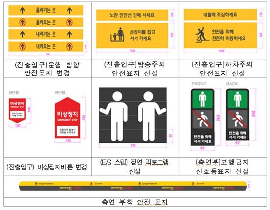 안전친화형 디자인은 에스컬레이터 진출입부의 비상정지 버튼 크기와 시인성을 향상시키고 보행금지 신호등 표지와 손잡이 잡기 도안(픽토그램) 등을 신설해 이용자가 알고 지켜야 할 안전수칙이 쉽게 눈에 띄어 주의를 끌 수 있도록 하는데 주안점을 뒀다.
