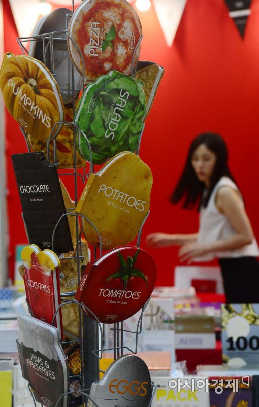 [아시아경제 백소아 기자] 15일 서울 강남구 코엑스에서 열린 2016 서울국제도서전에서 한 관람객이 식재료의 모양을 한 요리책을 보고 있다. '책으로 소통하며 미래를 디자인하다'를 주제로 열리는 올해 도서전에는 20개국 346개 출판사가 참가해 다양한 분야의 도서를 소개한다.