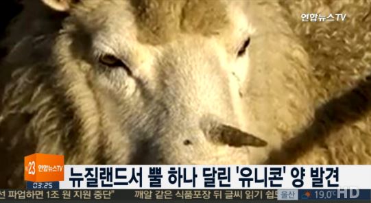14일 뉴질랜드 3TV 뉴스 사이트 뉴스허브에 따르면 남섬 캔터베리 지역에 있는 롤스턴 목장에서 뿔이 하나만 달린 일각수 양이 발견됐다.