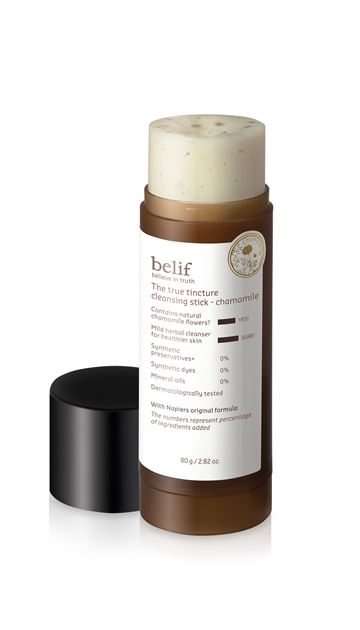 더 트루 팅쳐 클렌징 스틱-카모마일은 고대 허벌리스트로부터 내려온 전통 깊은 허브 농축 추출법 ‘팅쳐’를 통해 추출한 카모마일 추추물과 꽃잎 원물를 비롯한 90% 이상의 천연 유래 성분이 함유돼 클렌징 과정에서 칙칙하고 푸석해진 피부에 생기를 부여한다.